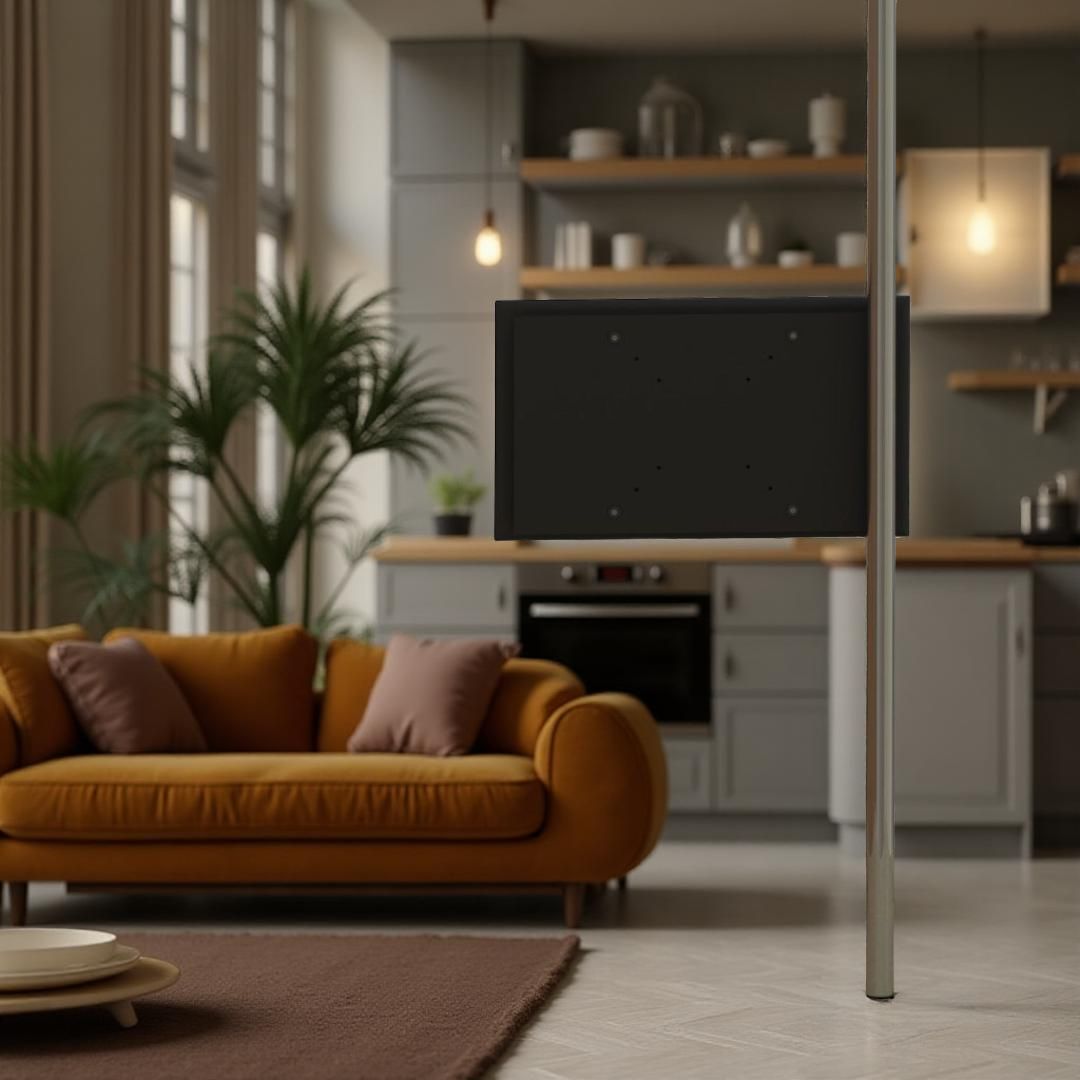 O Suporte Giratório para TV Modelo Bandeira é a solução ideal para quem deseja instalar a TV na lateral de uma parede ou em um canto, integrando perfeitamente dois ambientes. Com fixação no piso e teto, este modelo combina design moderno, funcionalidade e acabamento sob medida.