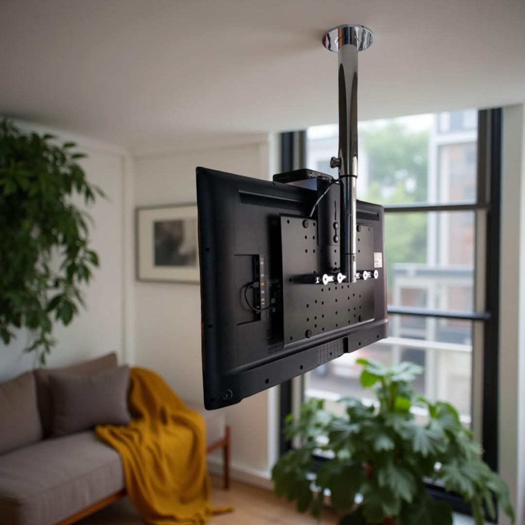 Suporte Giratório TV – Fixação Teto com Regulagem de Altura e Prateleira Superior – Cód. c10