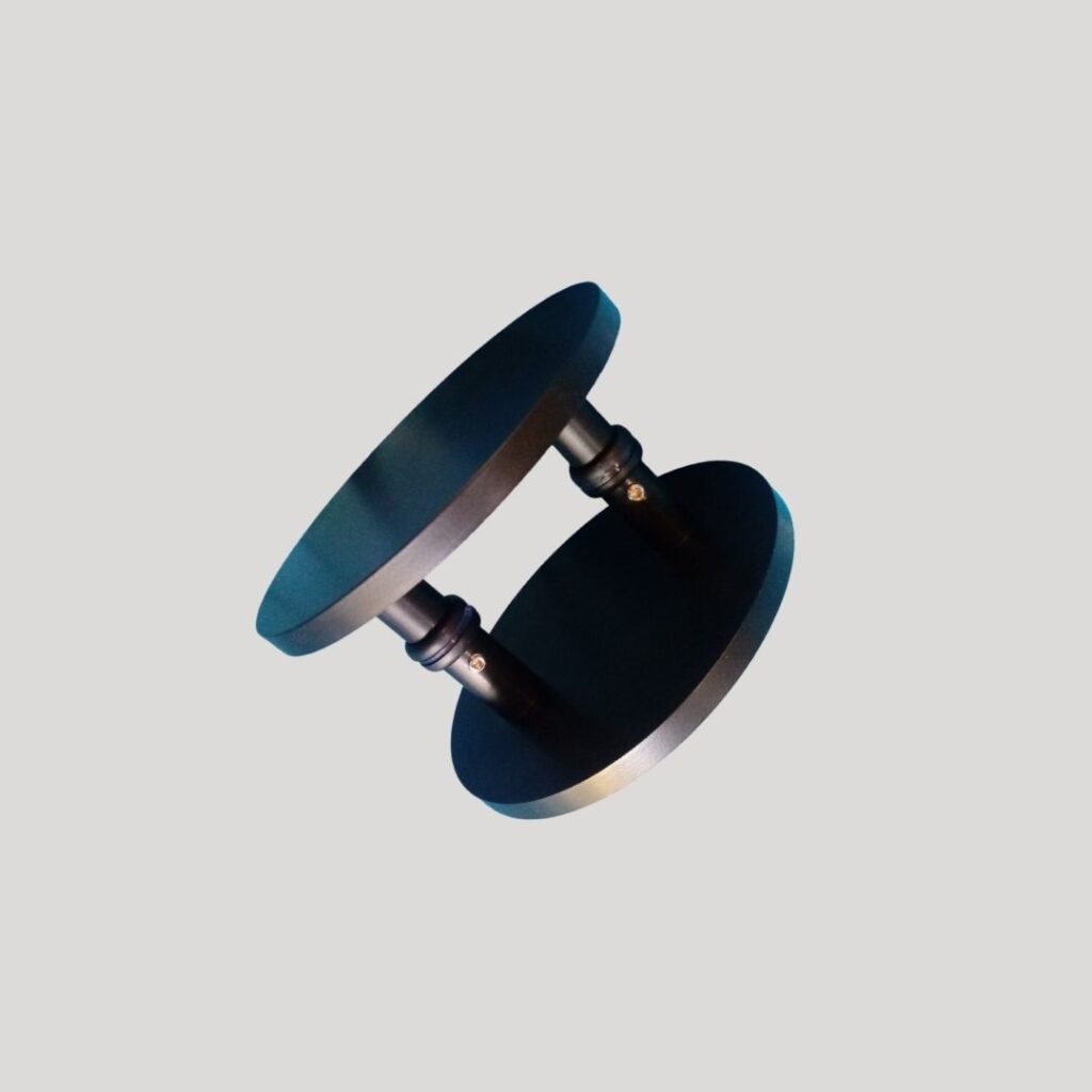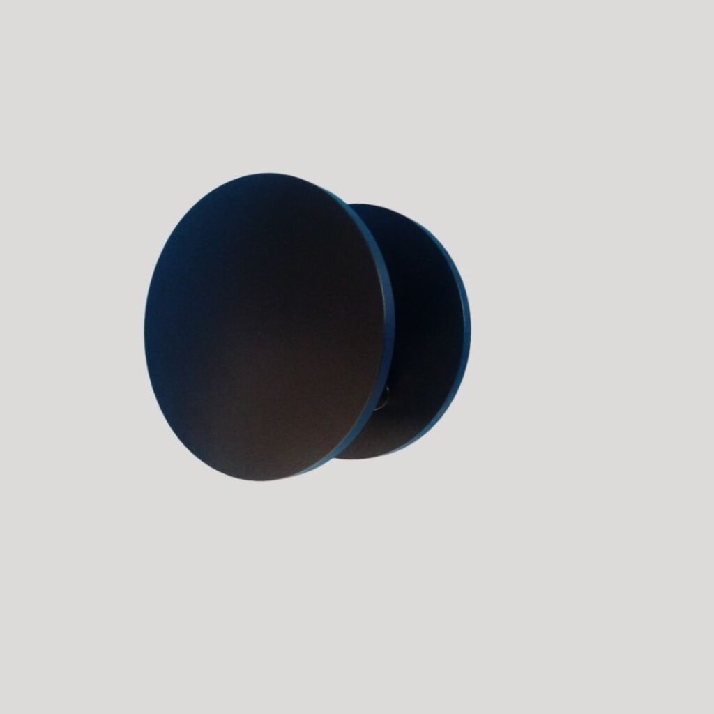 Seu formato redondo e acabamento preto valorizam projetos residenciais e comerciais, trazendo presença, sofisticação e funcionalidade.