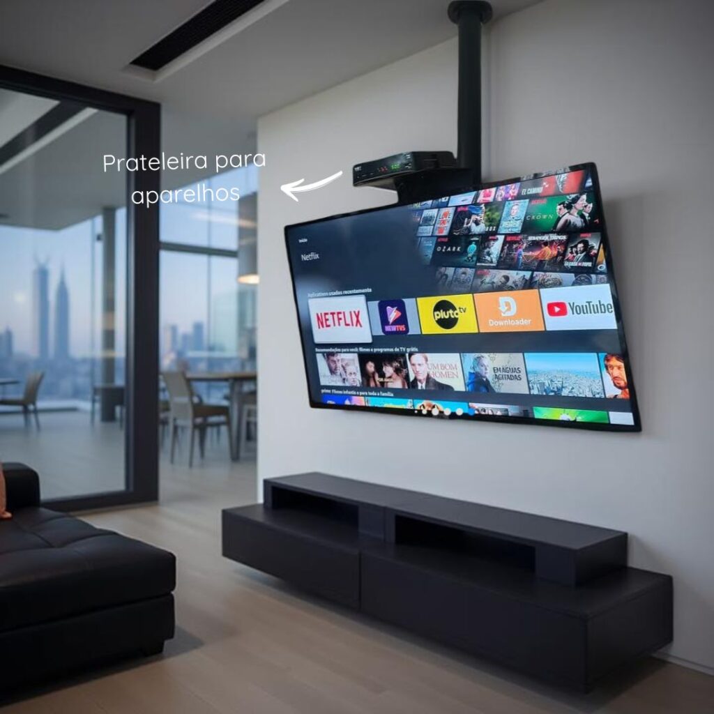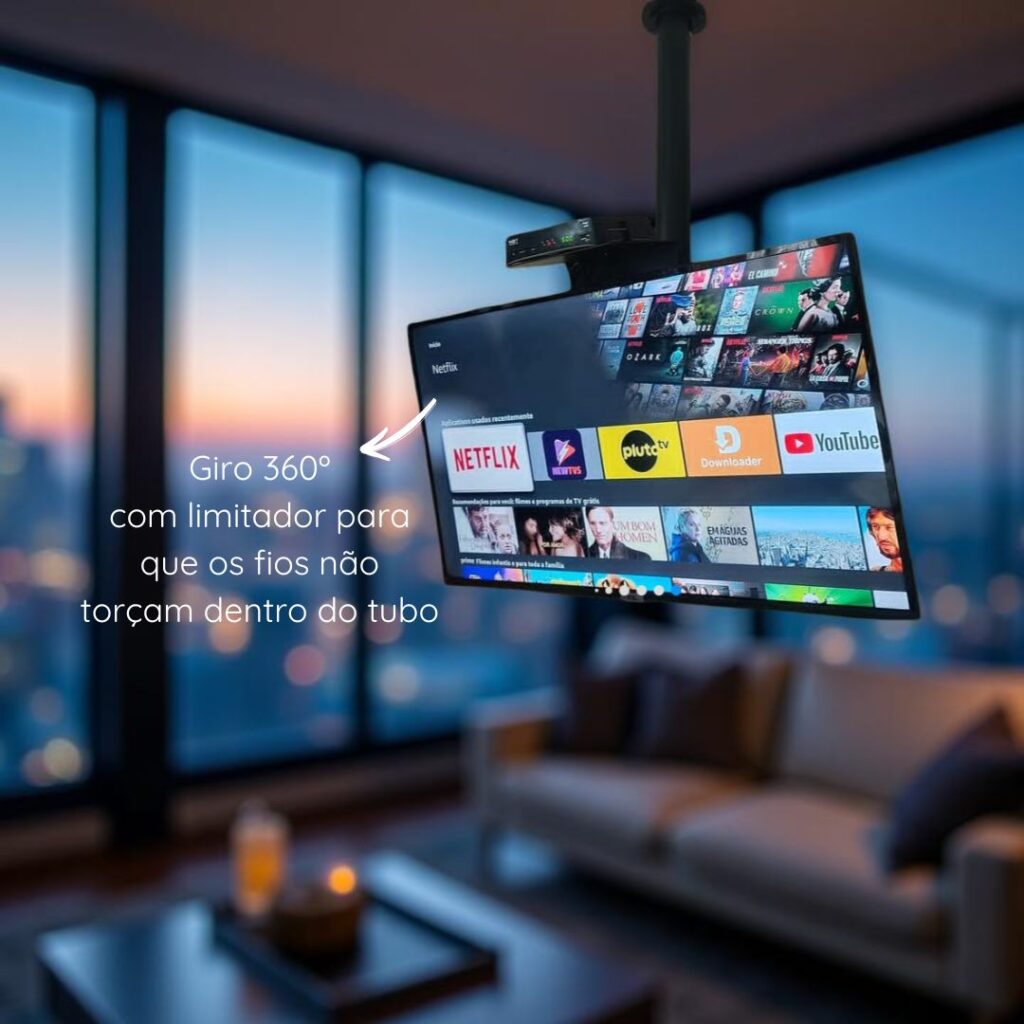 O Suporte Giratório para TV com Fixação no Teto é a solução perfeita para quem busca modernidade, praticidade e acabamento premium.