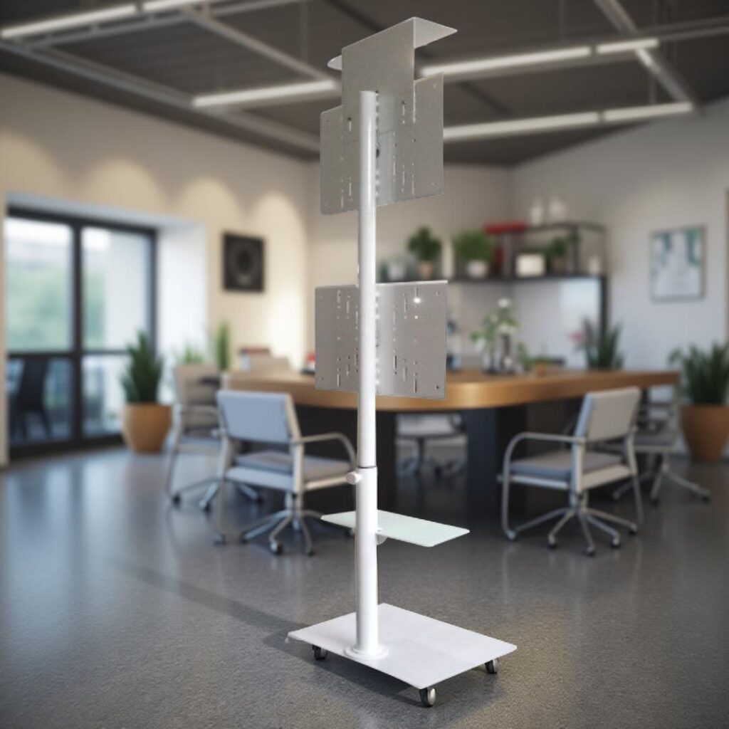 O Suporte Pedestal para 2 TVs é a escolha perfeita para escritórios, salas de reuniões e empresas que precisam de praticidade e um visual moderno.